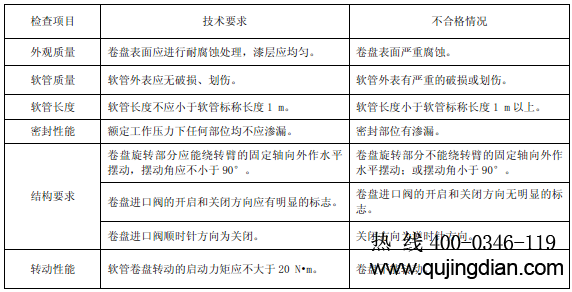 6.8.5.2.1 目測檢查消防軟管卷盤外觀質(zhì)量、軟管質(zhì)量和結構要求,用鋼卷尺測軟管長度,用直角尺測卷盤擺動角。